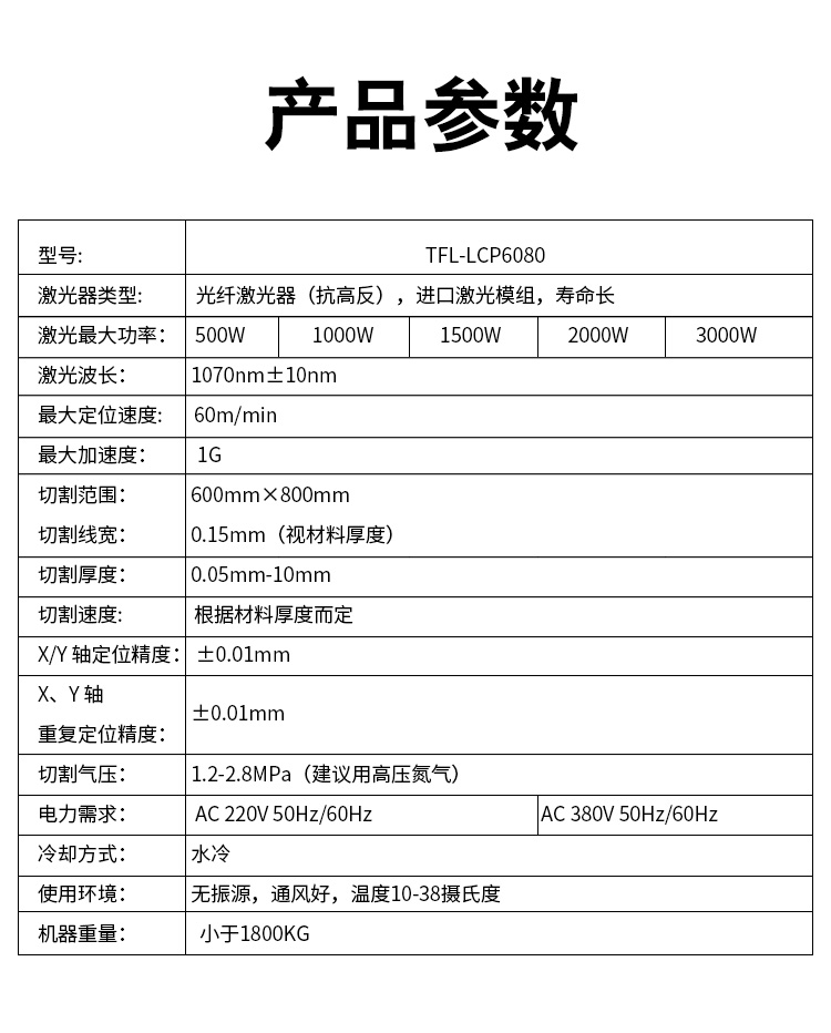 激光器最大功率 500W 1000W 1500W 2000w 3000W