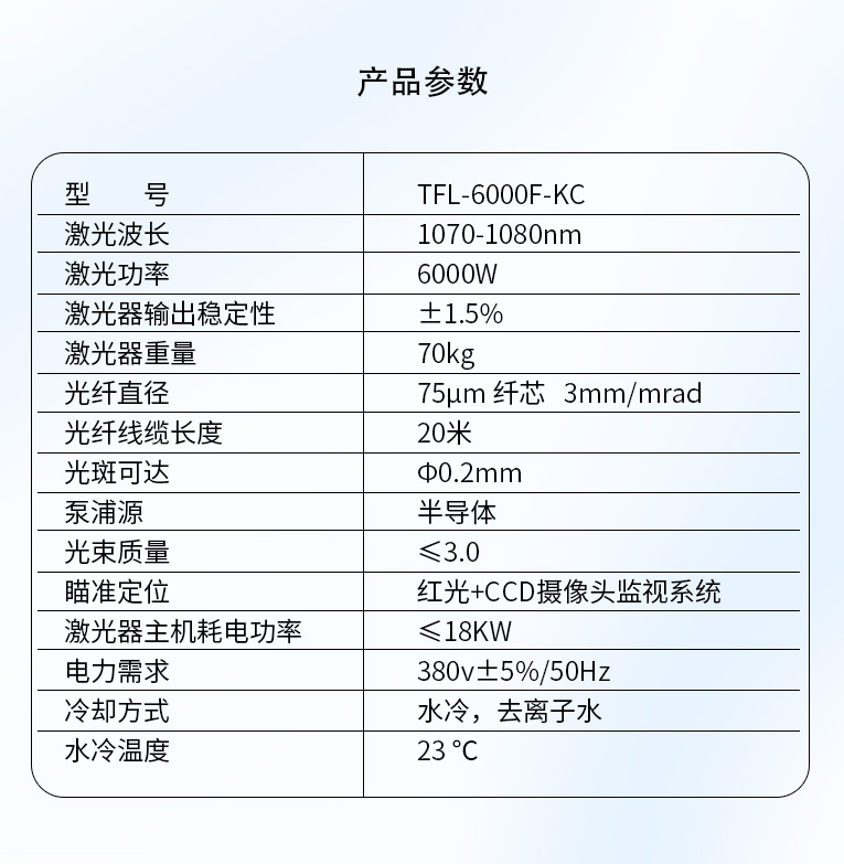 激光器主機(jī)耗電功率 |